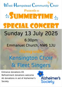 for a Three Choirs Concert 6.30pm Sunday 13th July at Emmanuel Church West Hampstead.